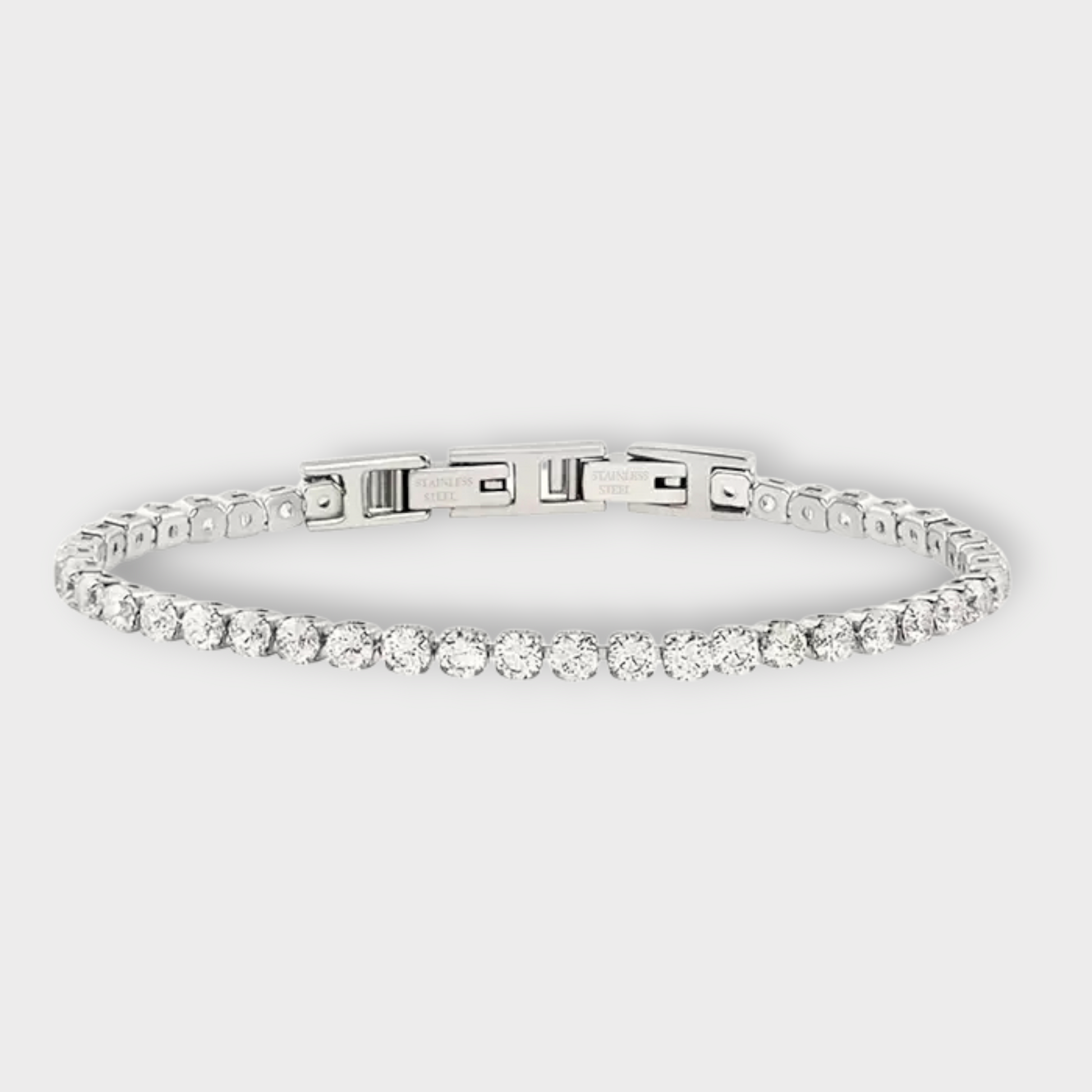 Amelia Tennis Armbånd er en moderne klassiker – et elegant armbånd i rustfrit stål prydet med 3 mm zirconia-sten, der glimter som små diamanter.