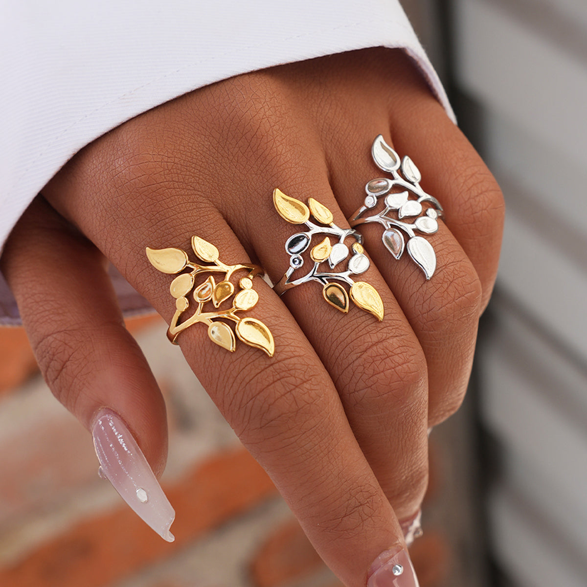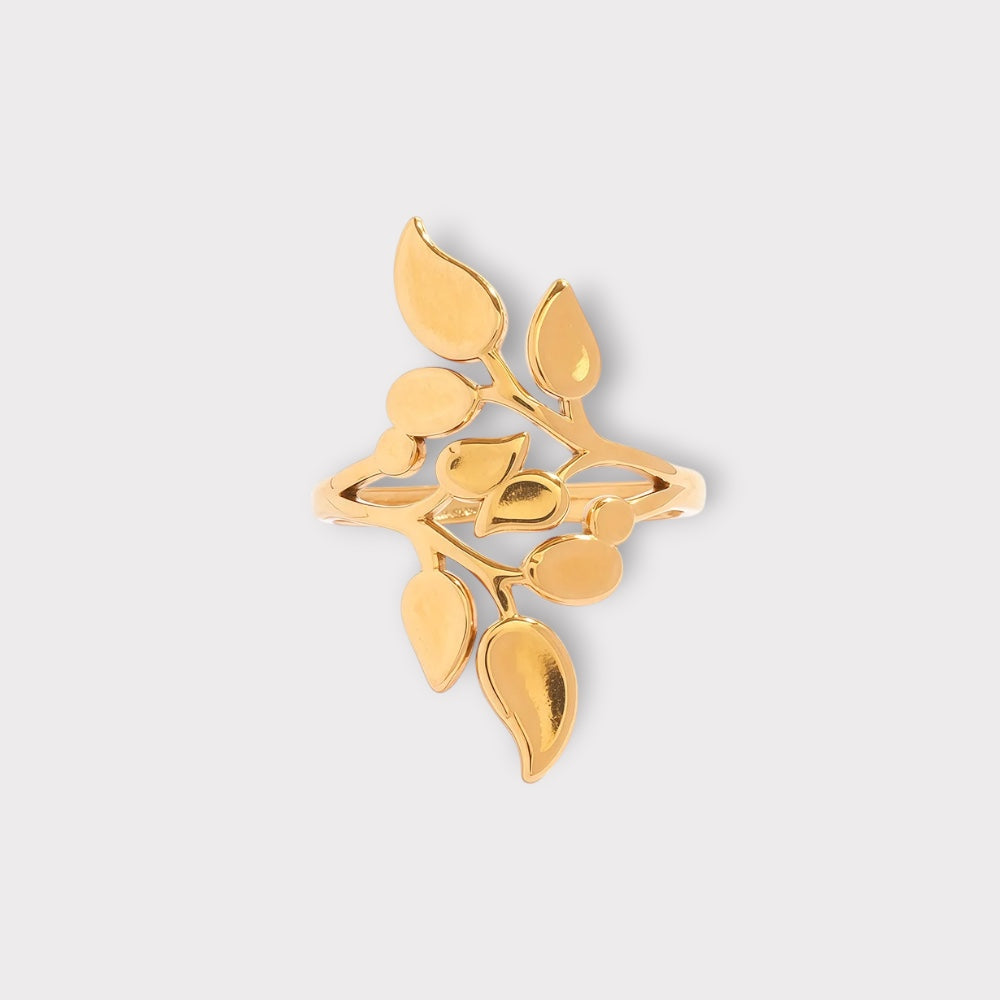 Elegant justerbar ring med et smukt bladdesign, der snor sig let og naturligt omkring fingeren. Ringen har et feminint og naturinspireret udtryk, som giver et eksklusivt look og gør den perfekt både til hverdag og fest.