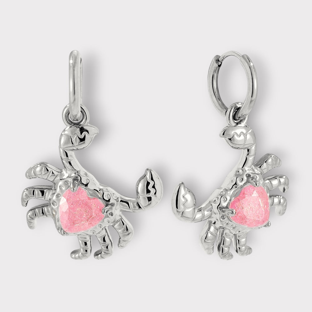 Elara Creolerne er det fineste lille smykke med et charmerende krabbe-vedhæng og et lyserødt zirkonia-hjerte, der giver et sødt og unikt touch til dit look.