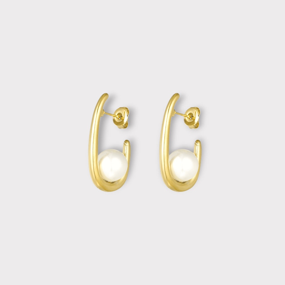 Golden Pearl Drop øreringene kombinerer en blød, moderne guldbue med en smuk, rund perle i midten, der næsten ser ud som om den svæver. Resultatet? Et stilrent, men opsigtsvækkende look, der passer lige godt til hverdagens jeans som til sommerens kjoler.