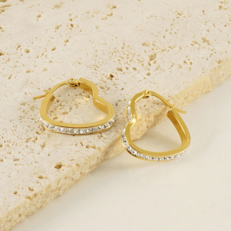 Hjerte Creoler -Guldbelagt, Zirconia sten & Vandfast