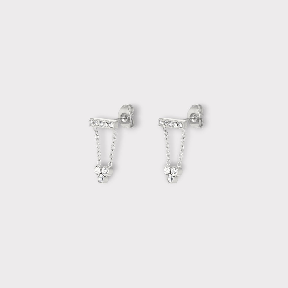 De her små øreringe med fine kæder og zirkonia sten giver det perfekte mix af klassisk og edgy. De er lette, glitrende og falder smukt fra øret – som små dråber af cool elegance.