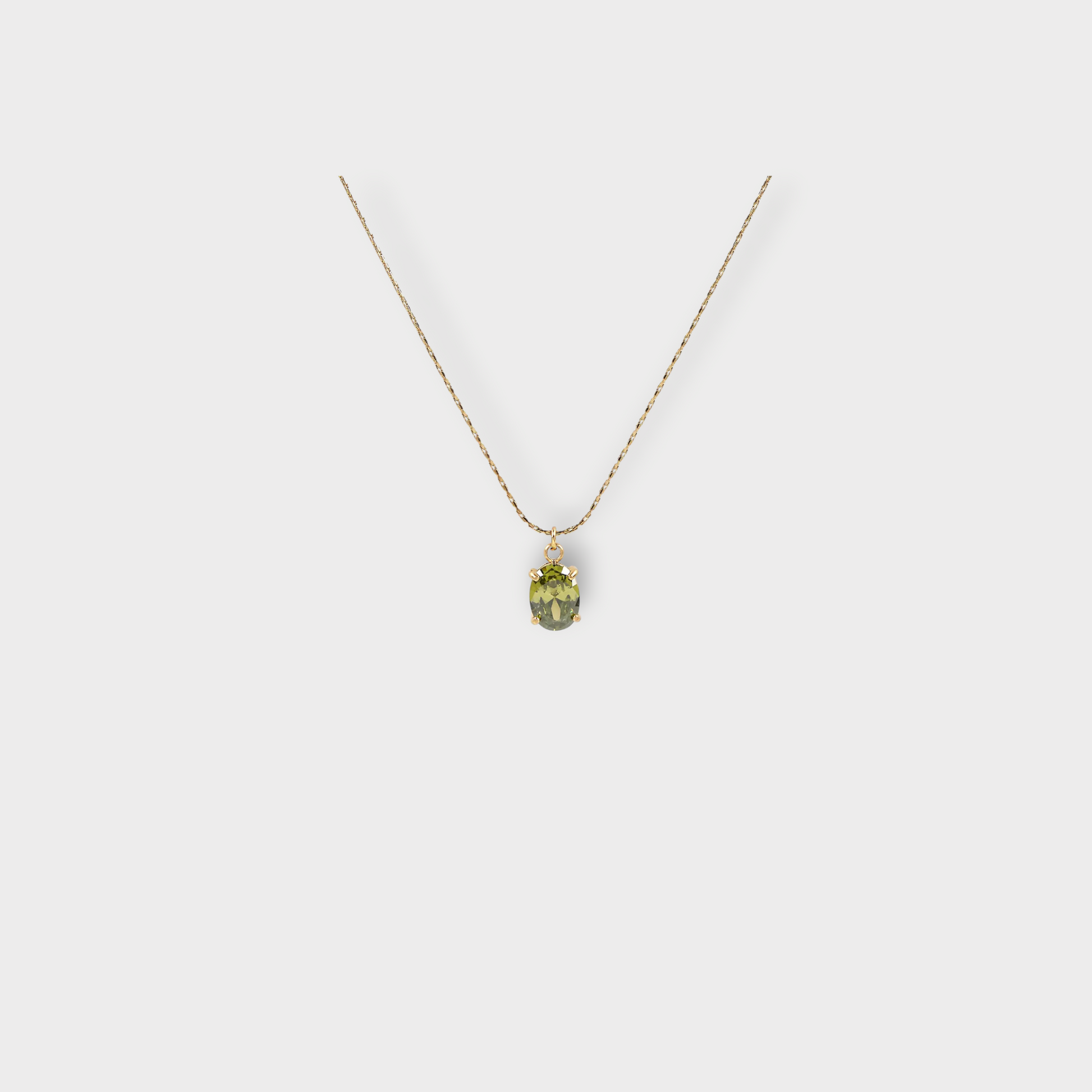 • Ovalt zirconia-vedhæng i tre varianter: klar, sort og olivengrøn.